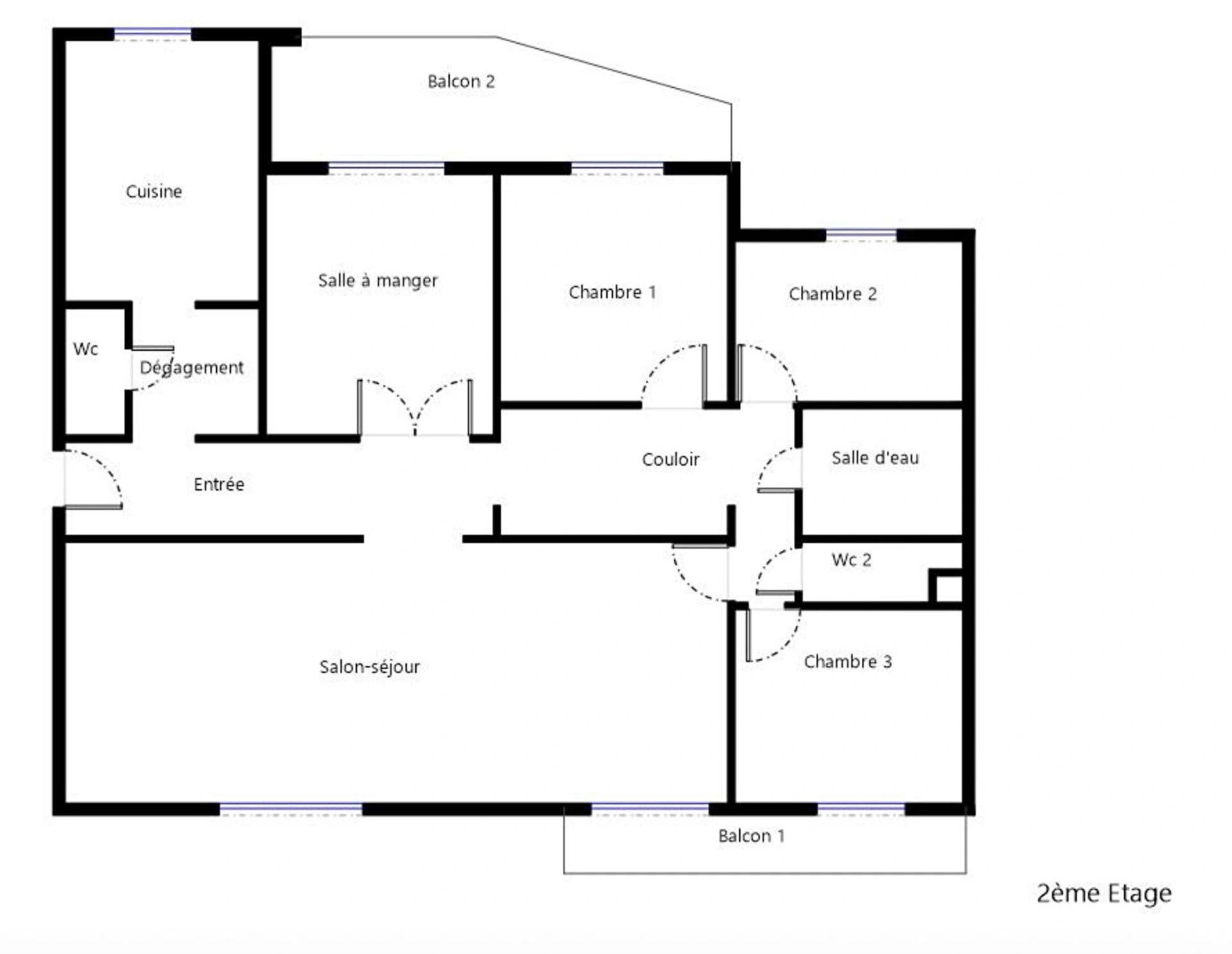 Le bien se compose d'une belle entrée, d'une cuisine indépendante, d'un grand séjour de 31m2 exposé sud-est donnant sur un premier balcon, d'une salle à manger donnant sur un second balcon, d'un dégagement vers l'espace nuit avec grands placards et desservant 3 chambres, une salle d'eau et 2 WC indépendants.