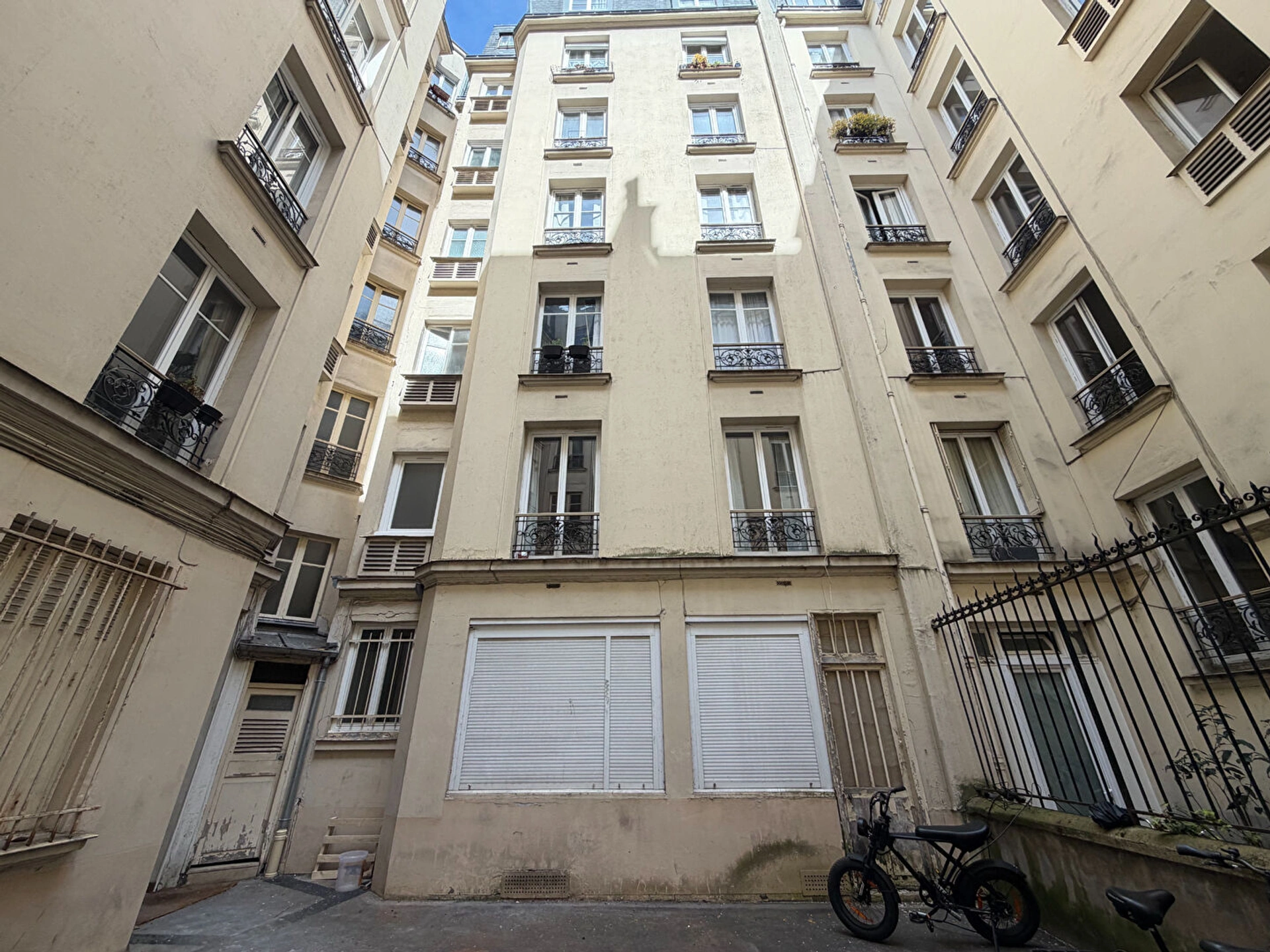 Le local donne exclusivement sur la cour, lumineux et ensoleillé, avec volets roulants et fenêtres en double vitrage PVC.